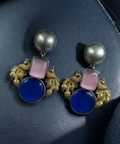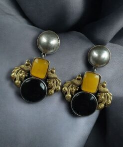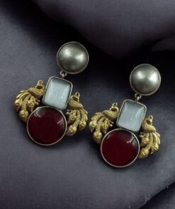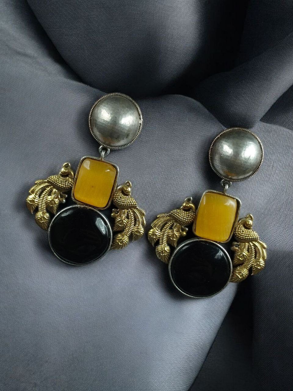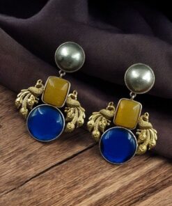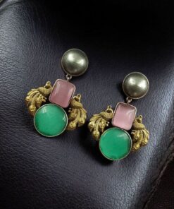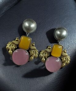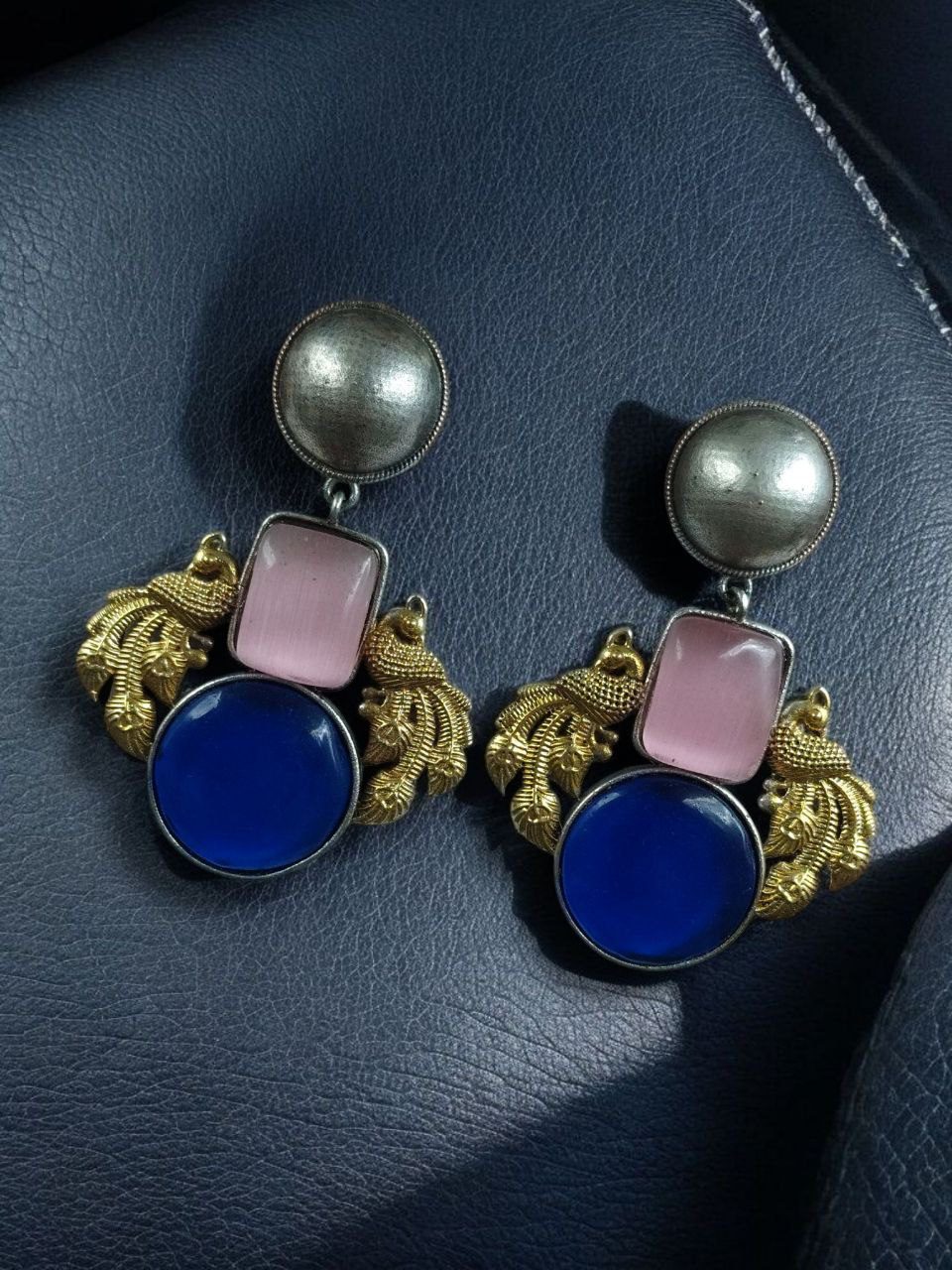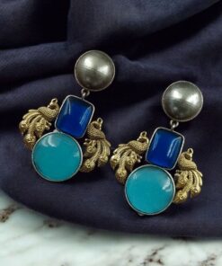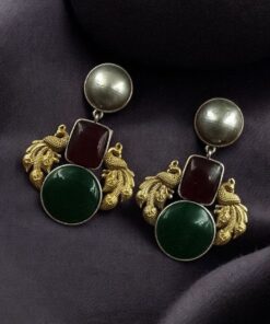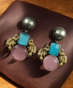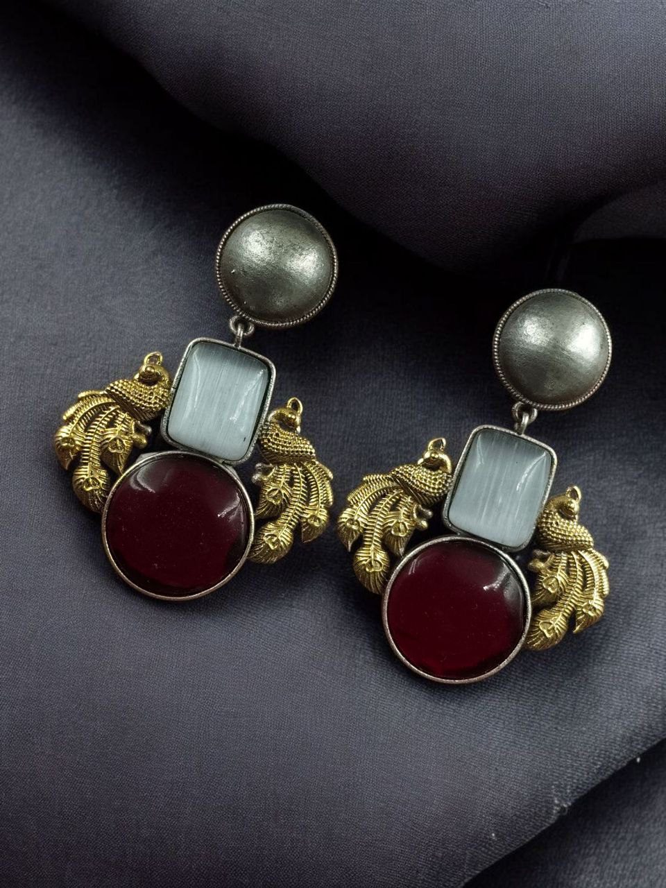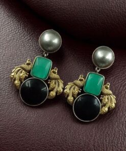 Elegant Peacock-Inspired Two-Tone Brass Earrings with Monalisa Stone ? A Contemporary Choice for Every Occasion