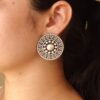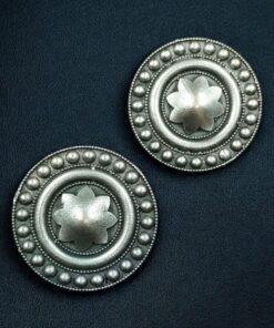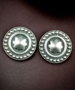Add a timeless touch of elegance to your jewelry collection with these Elegant Round Stud Earrings, beautifully handcrafted in oxidized silver replica finish. Designed to exude classic charm and ethnic grace, these Round Stud Earrings are perfect for women who adore traditional artistry blended with modern sophistication. Each stud is intricately detailed with fine silver-like patterns, giving it an antique finish that complements both ethnic and contemporary outfits effortlessly.