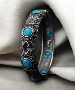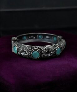 Made with high-quality materials, this oxidized stone kada not only promises durability but also retains its shine and charm over time. The oxidized silver finish adds depth and texture, giving the bracelet a unique character that enhances its overall beauty. Its lightweight design ensures comfortable wear throughout the day, making it ideal for long hours at events or casual outings.