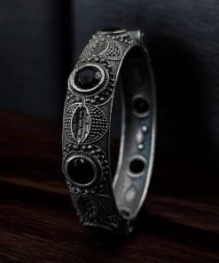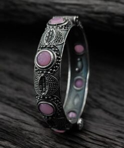 This elegant silver bracelet is a timeless piece that makes an excellent gift for loved ones. Whether it’s for a birthday, anniversary, or festive occasion, the bracelet?s blend of traditional craftsmanship and modern style makes it a meaningful present for women of all ages. The combination of the oxidized stone kada and the openable bangle design ensures this piece stands out, offering both elegance and practicality.