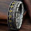 The oxidized stone kada is designed with intricate detailing and adorned with carefully selected stones, adding a vintage charm that stands out. The oxidized finish gives it an antique allure, while the embedded stones provide a striking contrast, making this piece a statement of both heritage and contemporary elegance. The intricate craftsmanship reflects the rich tradition of oxidized jewelry, offering you a bracelet that exudes sophistication while retaining a rustic, artisanal appeal.