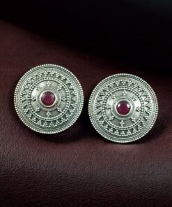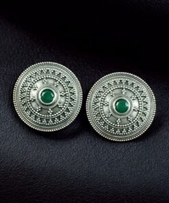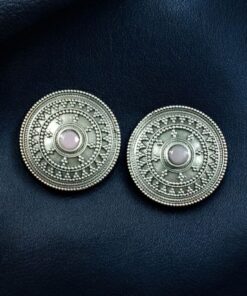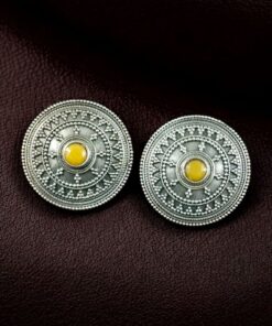 Elegant Silver Look Round Stud Earrings with Stone | Everyday Wear Perfect Jewelry For Girls