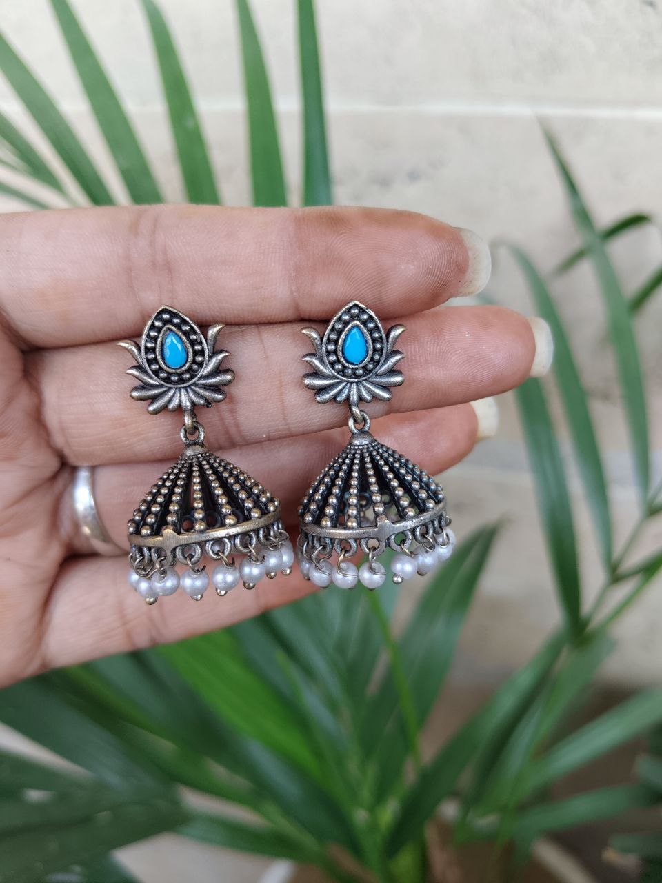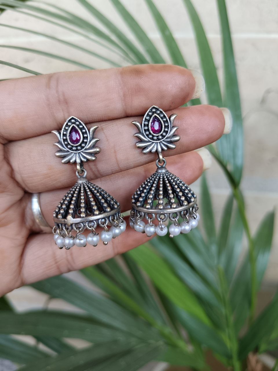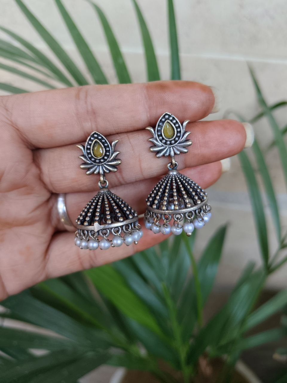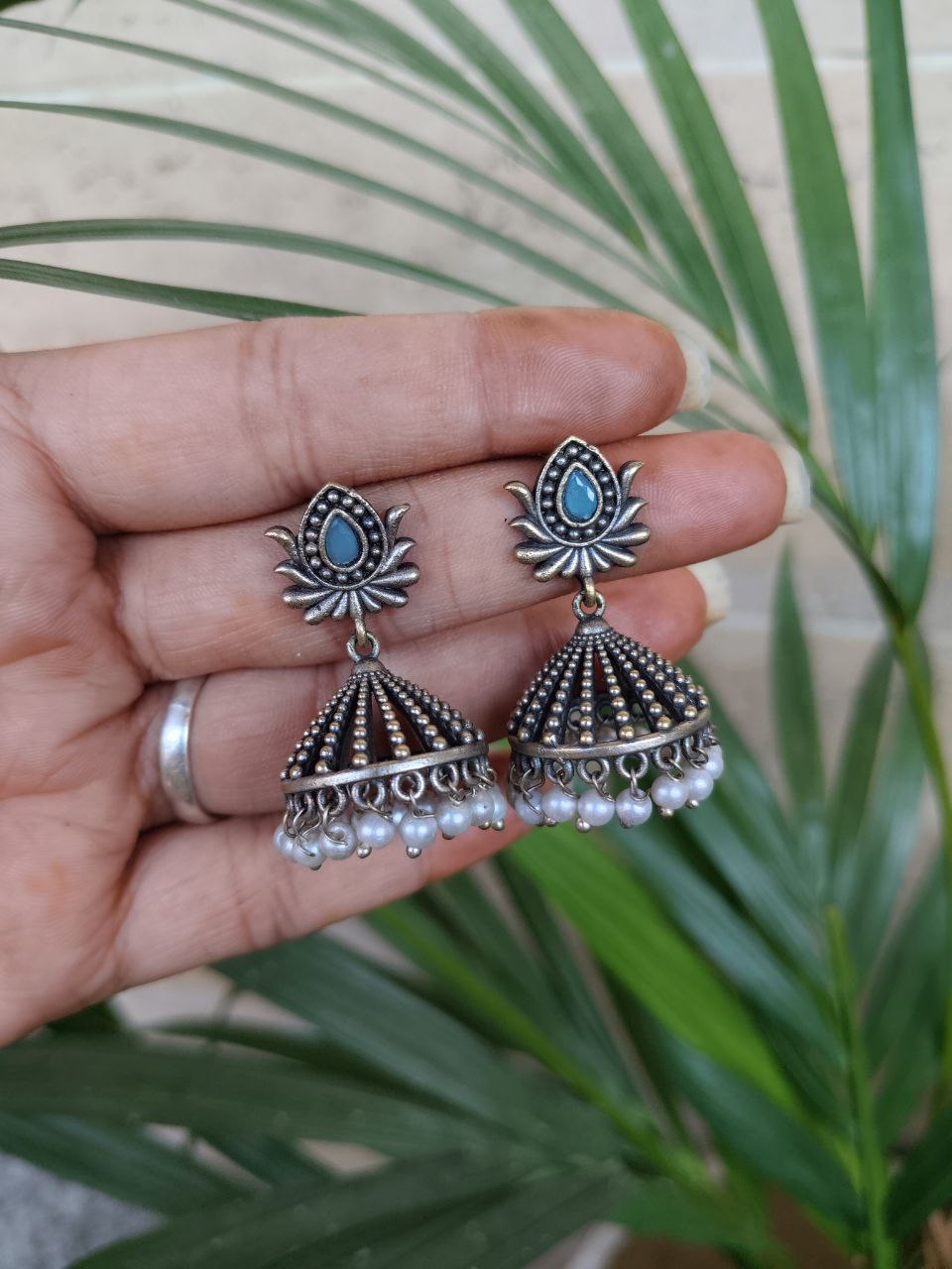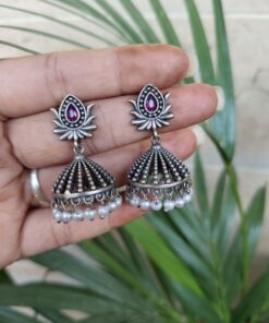 The silver lotus jhumka is a perfect blend of traditional elegance and contemporary grace. Inspired by the sacred lotus motif, this beautifully crafted earring symbolizes purity, beauty, and cultural richness. Designed for women who love ethnic jewelry with a refined touch, this piece adds a graceful statement to any outfit, whether it is festive, traditional, or casual wear.
