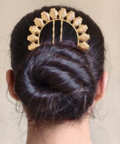 If you are looking for a hair accessory that blends traditional charm, secure comfort, and elegant design, this Ethnic Gold Plated Juda Pin is the perfect choice. Graceful, stylish, and practical, it beautifully completes your bun hairstyle and enhances your ethnic look effortlessly.