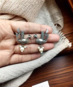 Ethnic Oxidized Peacock Stud Earrings in Silver Beautiful Look-Alike Design
