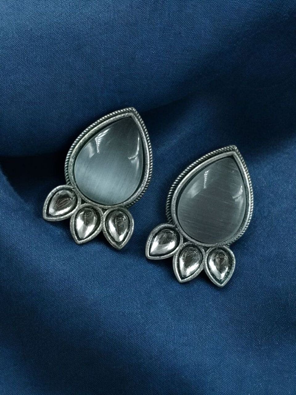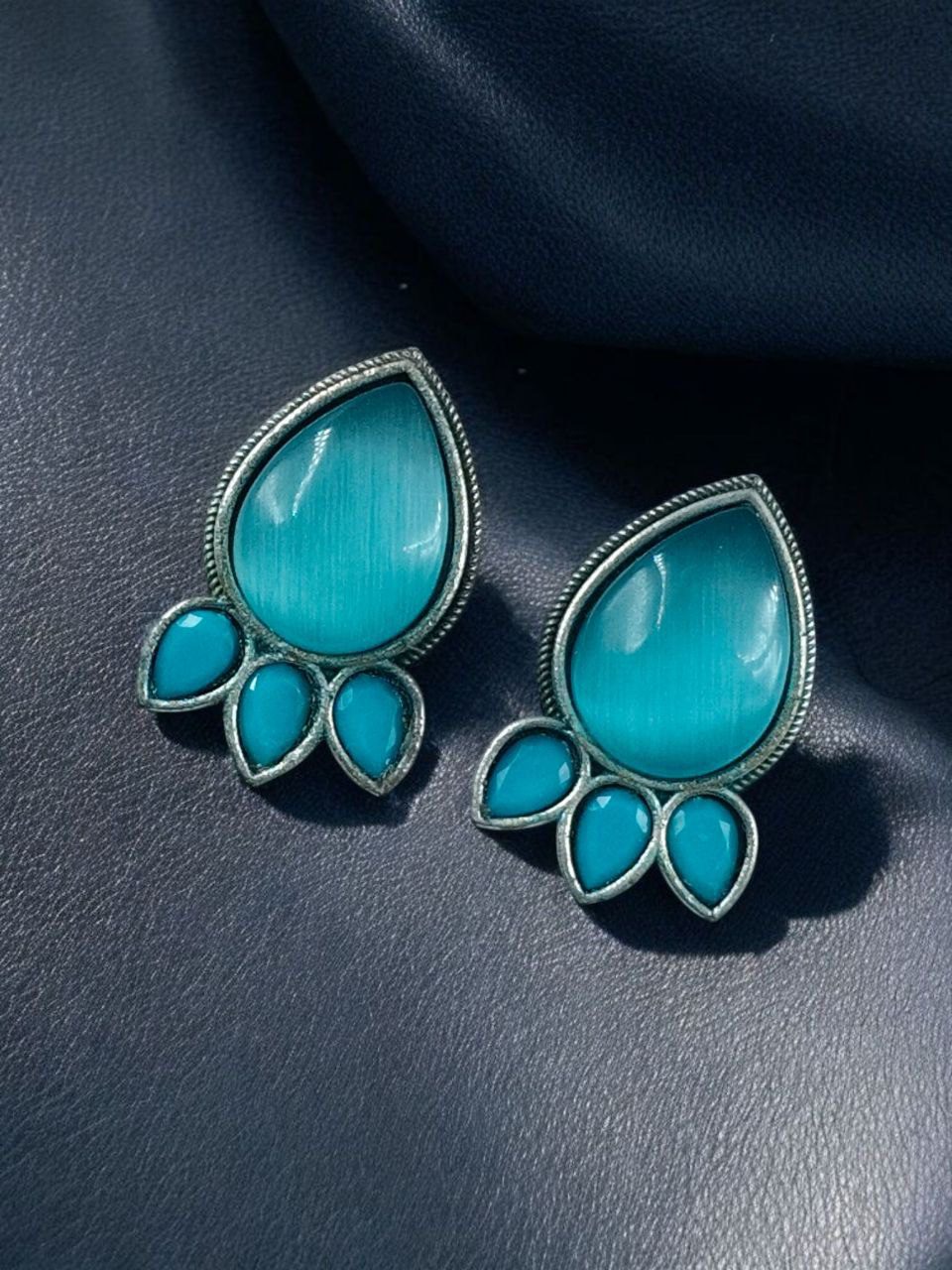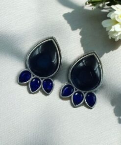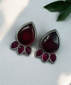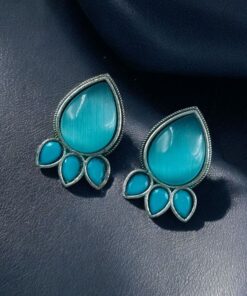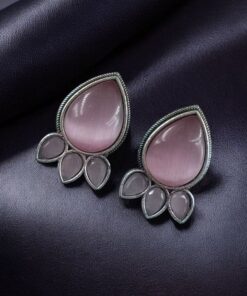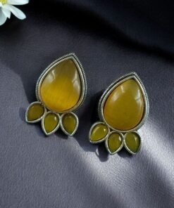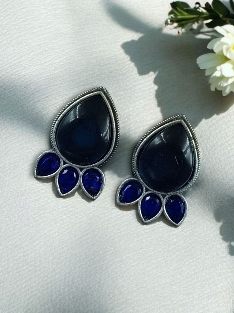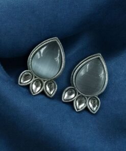 Ethnic Silver Plated Stud Earrings | Monalisa Stone Unique Design Oxidized Jewelry