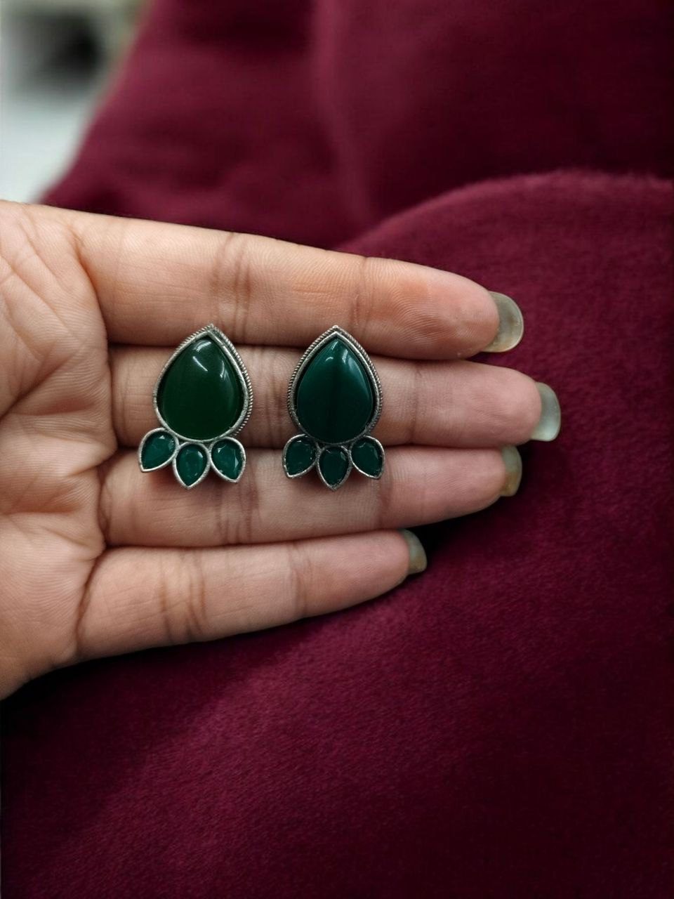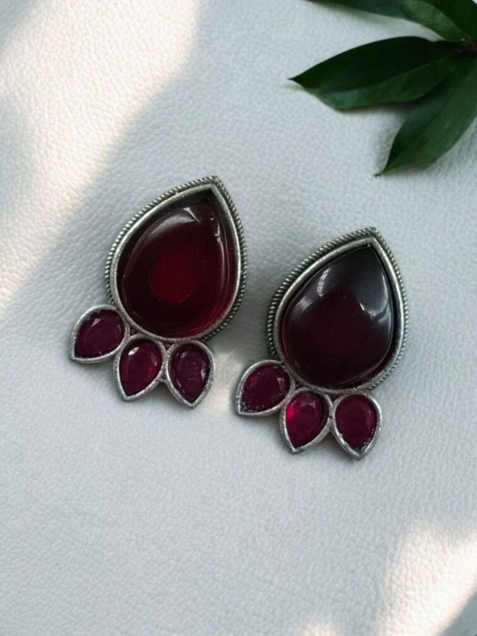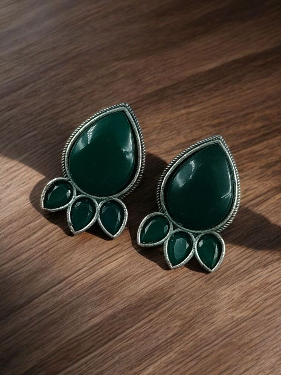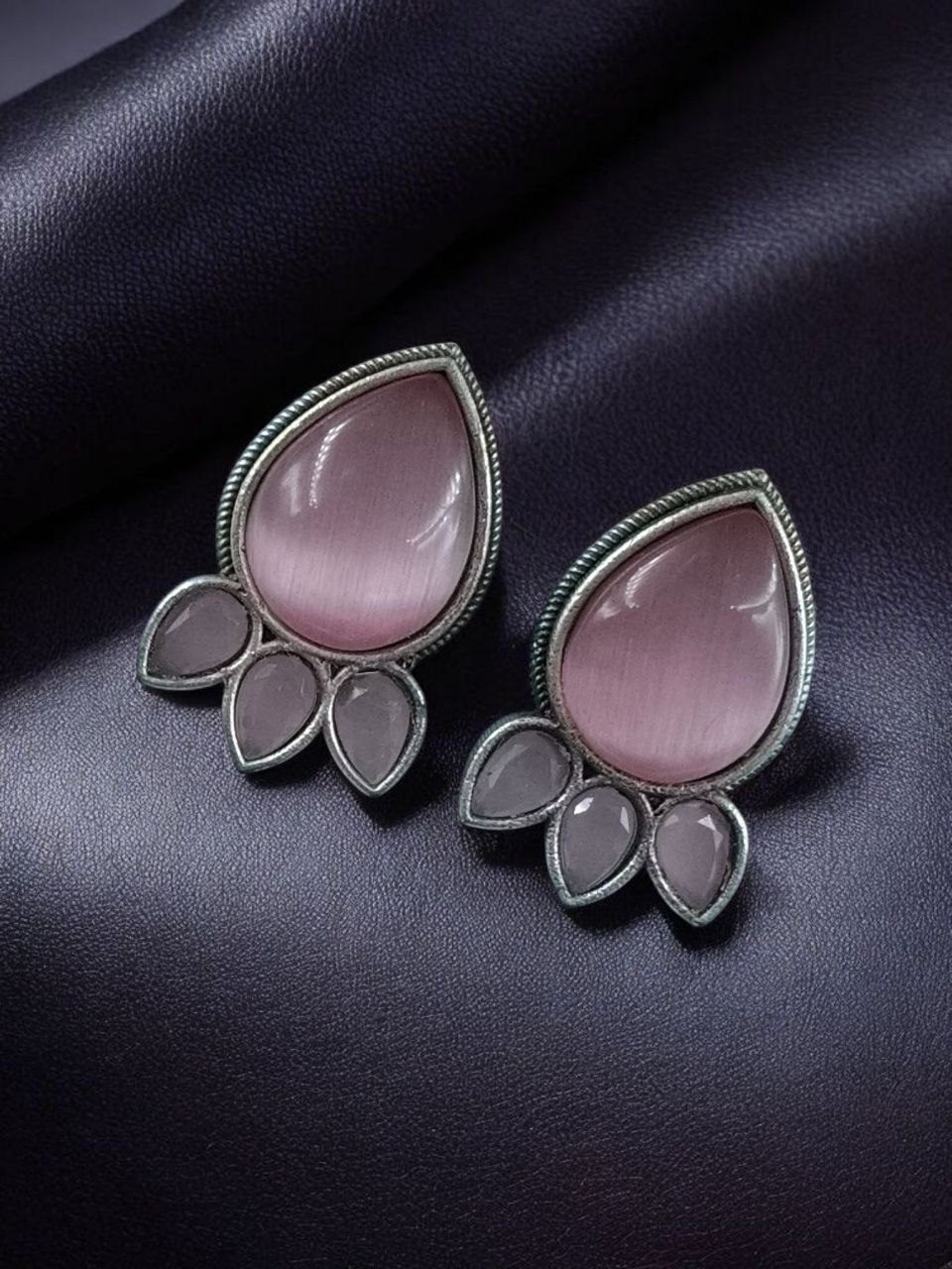 Ethnic Silver Plated Stud Earrings | Monalisa Stone Unique Design Oxidized Jewelry