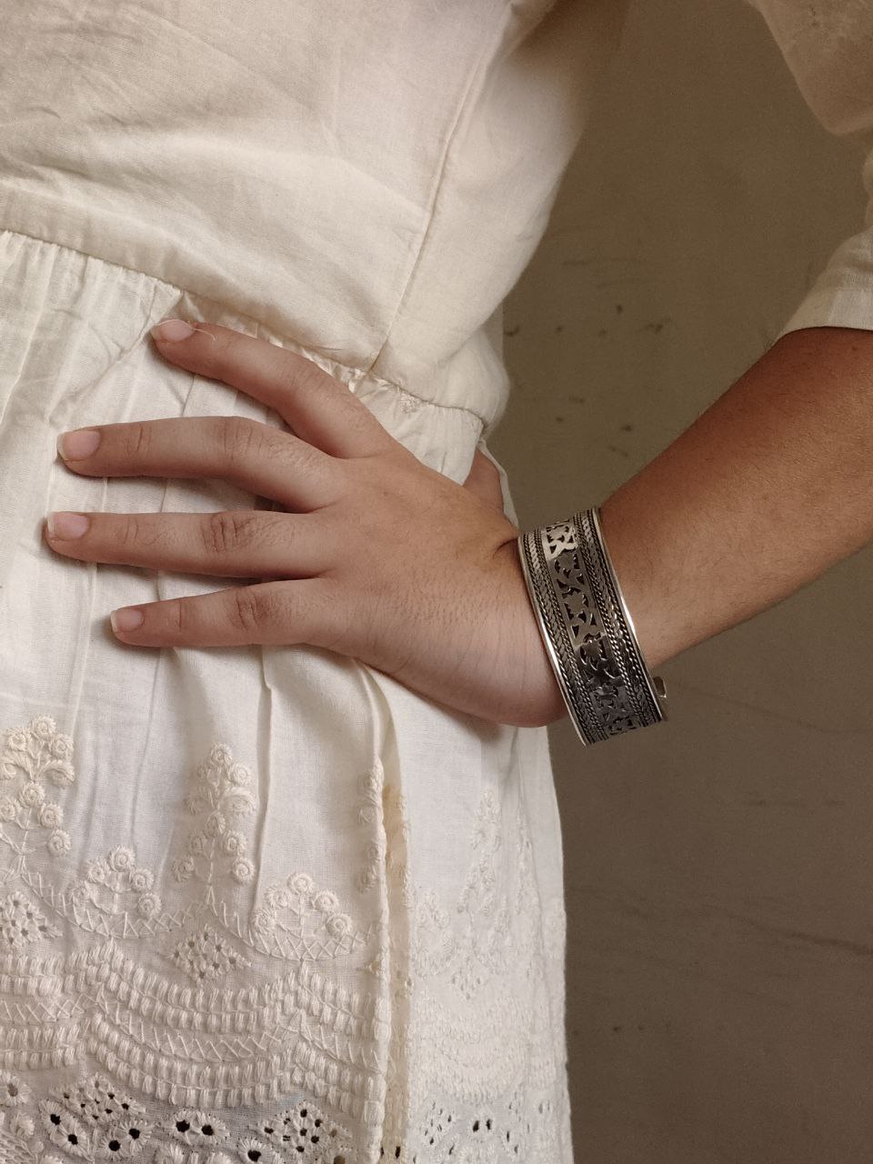 Handcrafted with attention to detail, this bracelet showcases a fusion of tradition and modern design ? making it the perfect accessory for women who enjoy jewelry that speaks of heritage, style, and elegance. Whether worn daily or reserved for special events, this Fashionable Silver Plated Ethnic Cuff Bracelet promises to enhance your look every time.