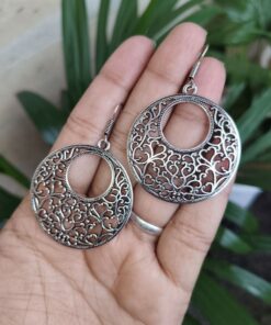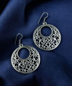 Elevate your jewelry collection with these German Silver Floral Art Circle Dangler Earrings, a perfect blend of ethnic tradition and modern charm. Designed with precision, these Circle Dangler Earrings feature a delicate floral art pattern in a graceful circular design, showcasing the elegance of handcrafted artistry. The intricate details reflect timeless beauty, making them an ideal choice for women who love unique jewelry pieces.