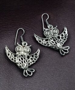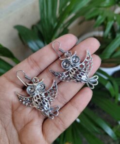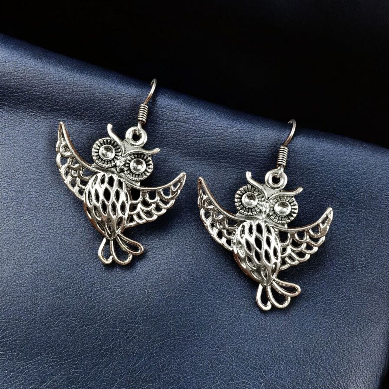 German Silver Owl Hook Earrings | Daily Wear Dangler Beautiful Jewelry for Girls