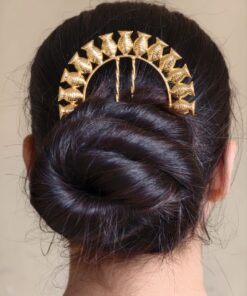 If you are looking for hair jewelry that blends cultural symbolism, elegance, and comfort, this Gold Plated Fish Design Juda Pin is the perfect choice. Unique, stylish, and beautifully crafted, it enhances your hairstyle effortlessly and completes your ethnic look with timeless charm.