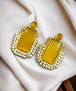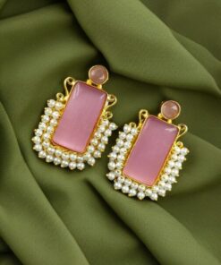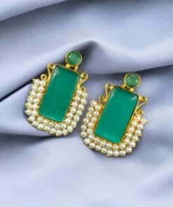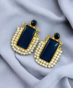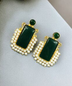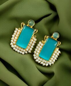 Gold Plated Geometric Stone Stud Earrings with Beautiful Pearl Detailing | Best Gift For Her
