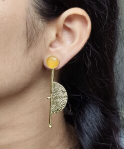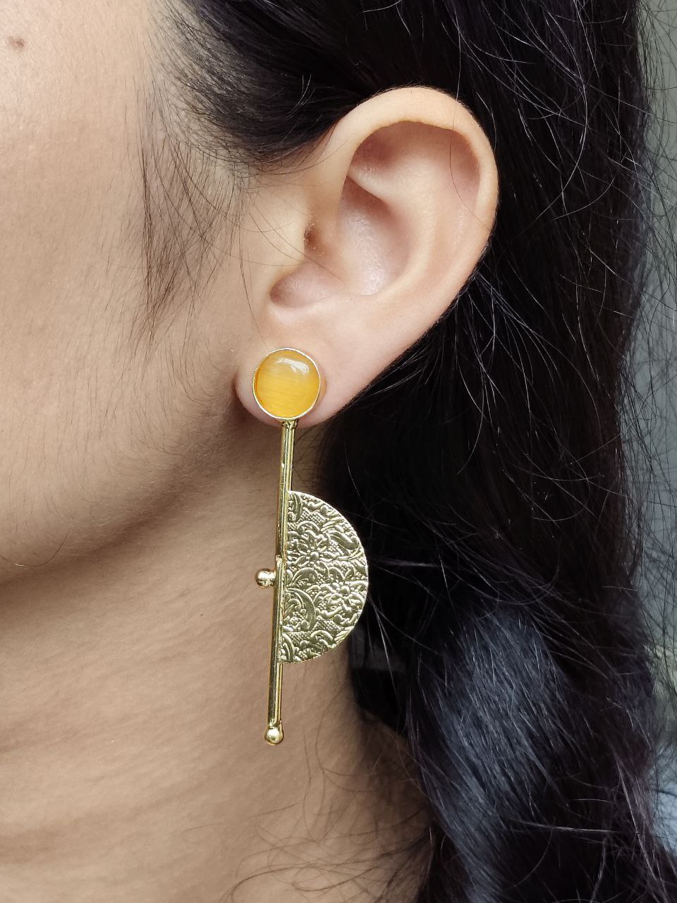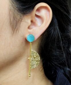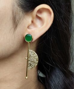Add a perfect blend of ethnic elegance and modern charm to your jewelry collection with our Gold Plated Half Circle Earrings. Designed with precision and creativity, these earrings showcase a unique half circle shape adorned with delicate stone work and intricate floral art detailing. The result is a versatile accessory that beautifully complements both traditional ethnic outfits and modern western styles, making it an absolute must-have for every jewelry lover.