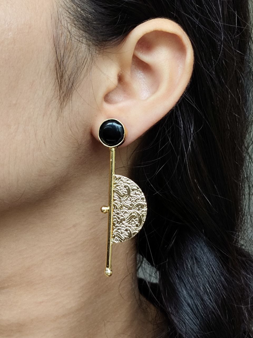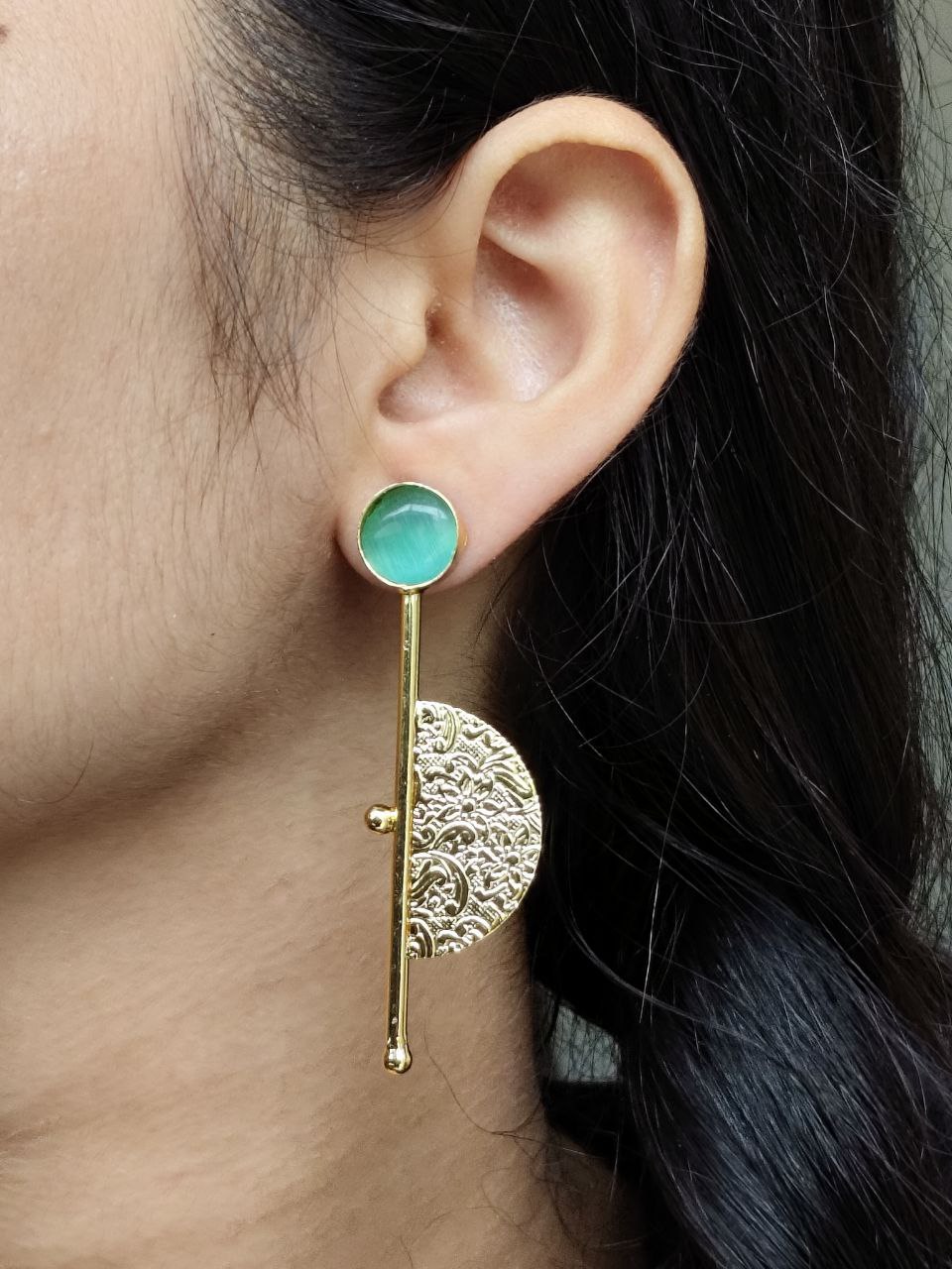 Crafted from high-quality materials, these Half Circle Earrings feature a premium gold plating that adds a radiant shine and ensures durability. The floral art design enhances its appeal, giving it a timeless, artistic vibe. The sparkling stone embellishments highlight the fine craftsmanship, making these Half Circle Earrings perfect for weddings, festive occasions, parties, or even as statement daily wear for women who love to experiment with their style.