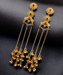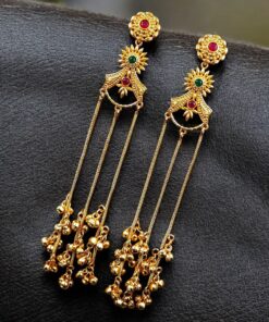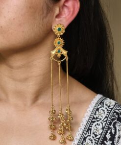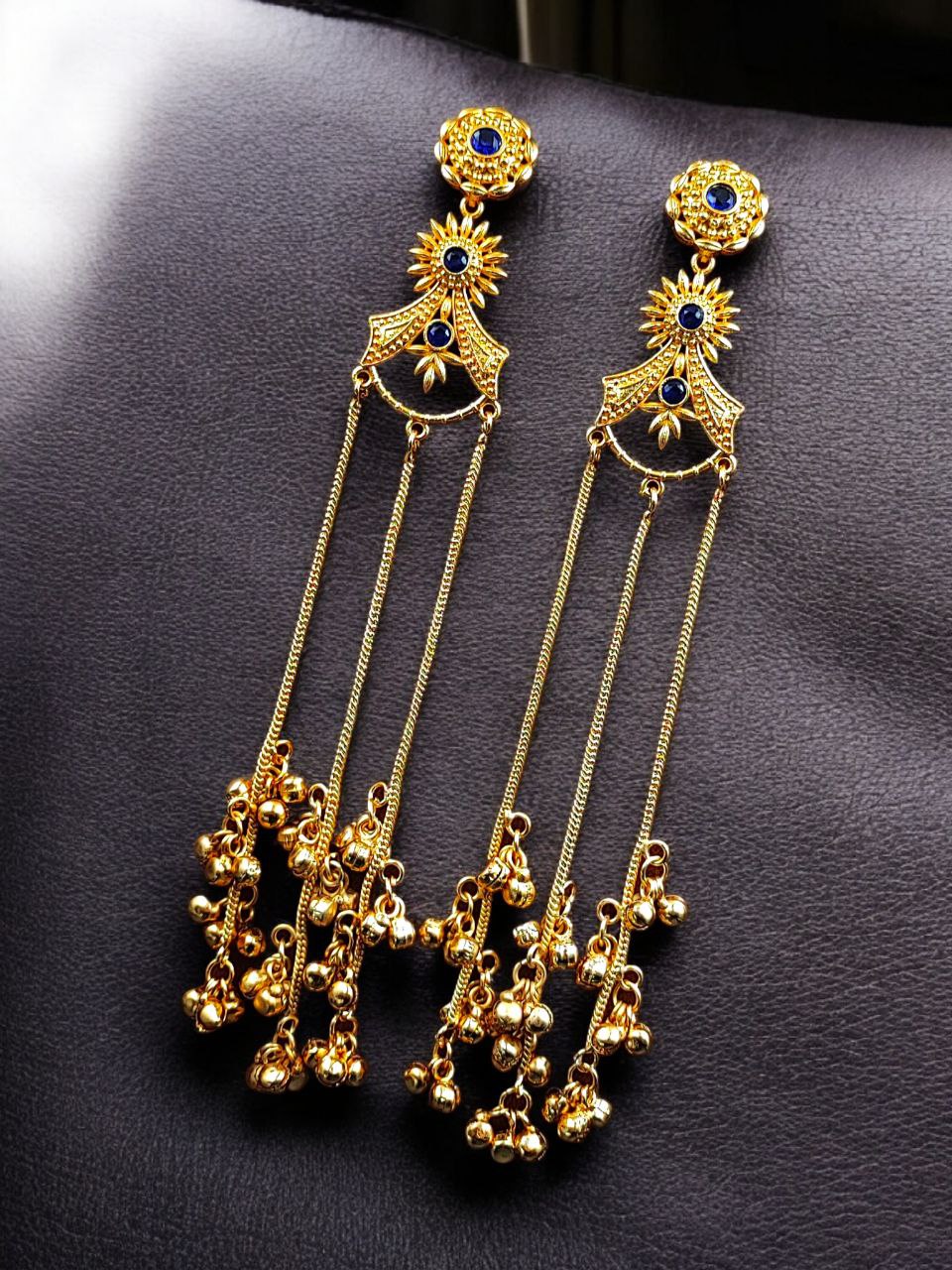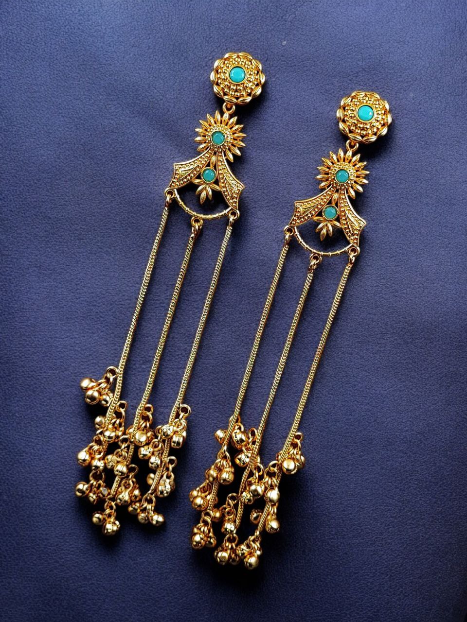 Gold Plated Kashmiri Earrings with Beautiful Stone Work | Traditional Ethnic Dangler Jewelry
