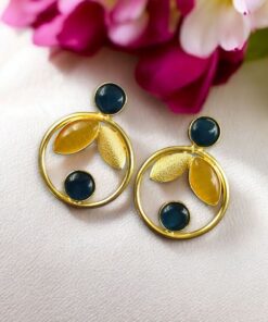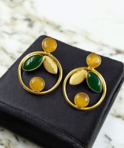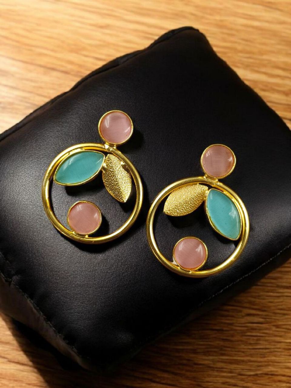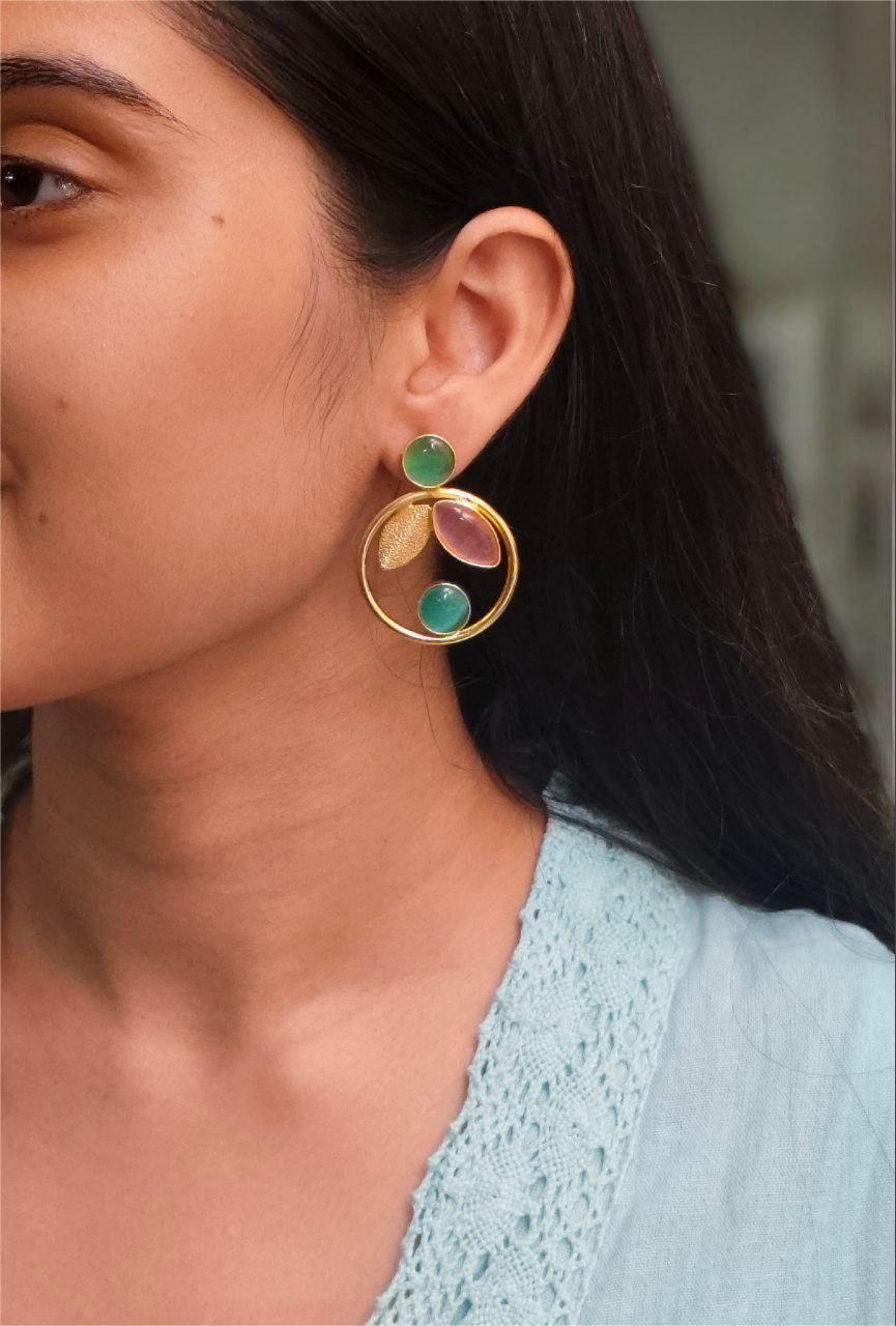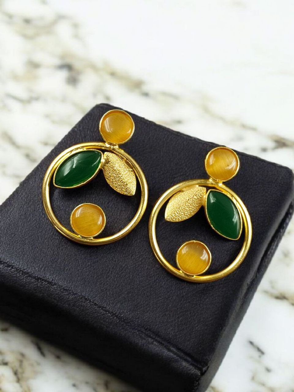 Gold Plated Leaf & Circle Design Earrings with Monalisa Stone ? Ethnic & Western Look Amazing Jewelry