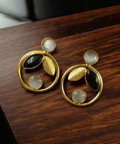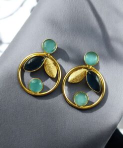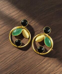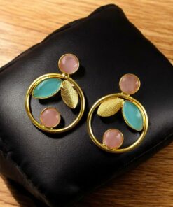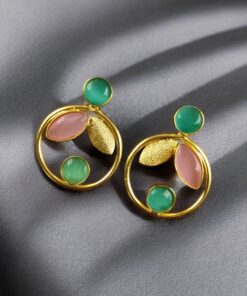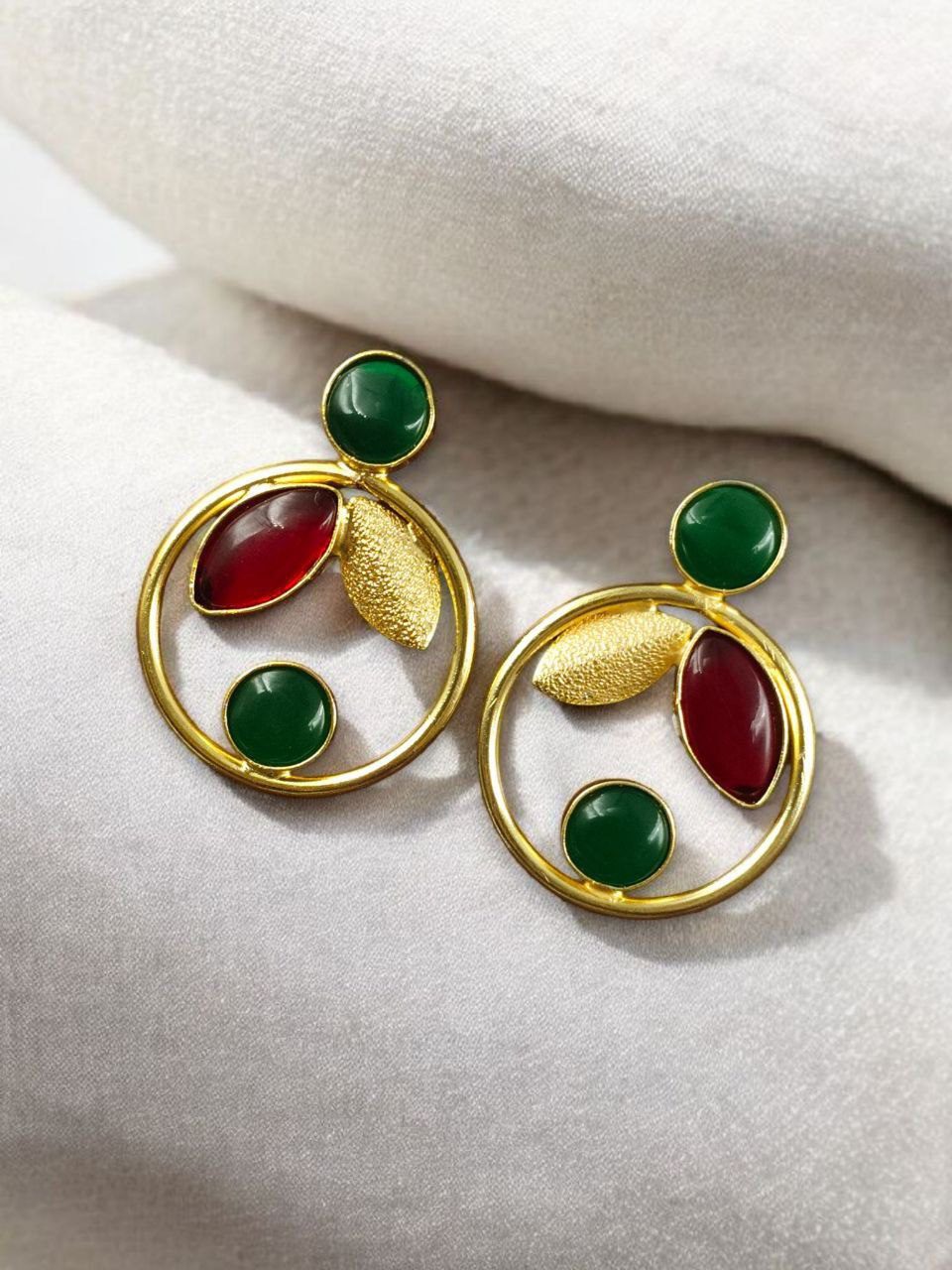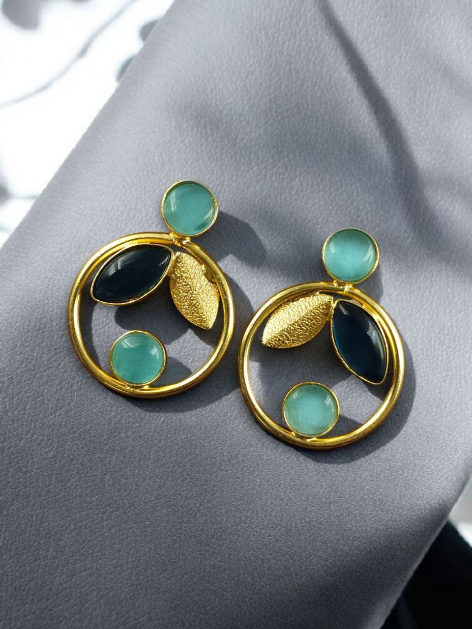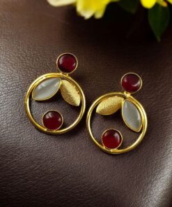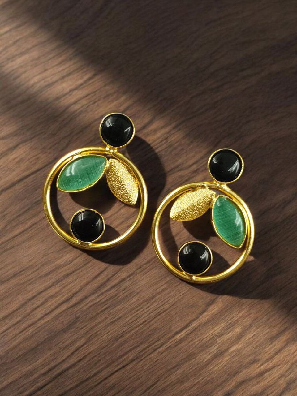 Gold Plated Leaf & Circle Design Earrings with Monalisa Stone ? Ethnic & Western Look Amazing Jewelry
