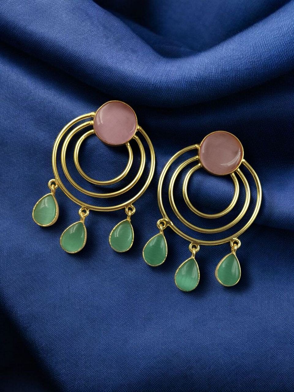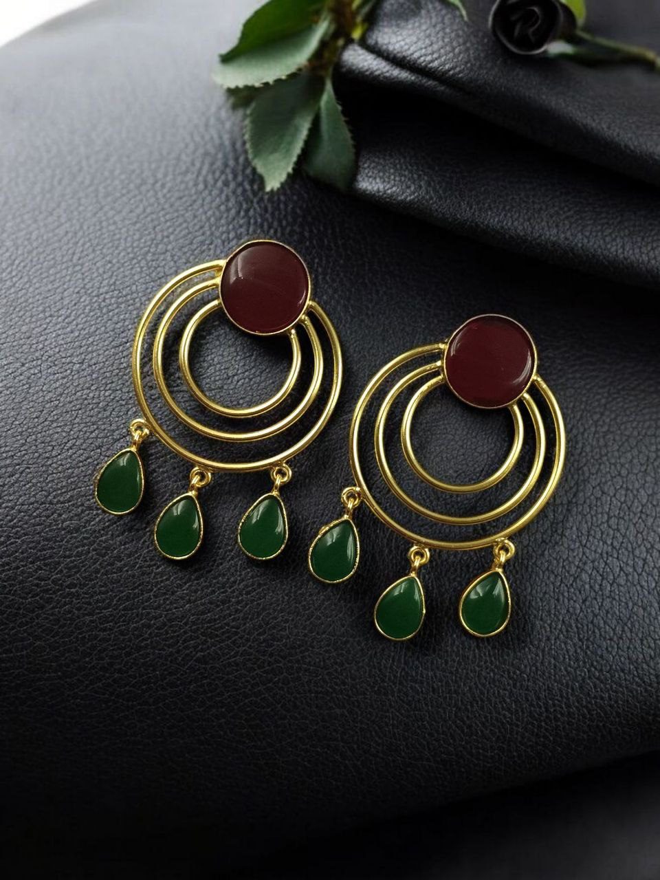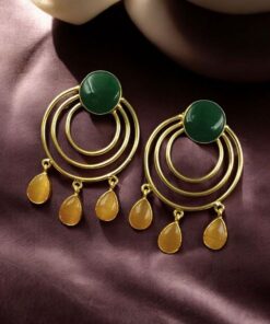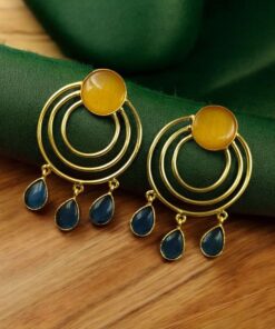 Introducing our Gold Plated Round Dangler Earrings, an exquisite piece that flawlessly fuses ethnic elegance with a modern western look. These earrings are the ideal choice for women who appreciate jewelry that stands out with a touch of tradition and a splash of contemporary charm.