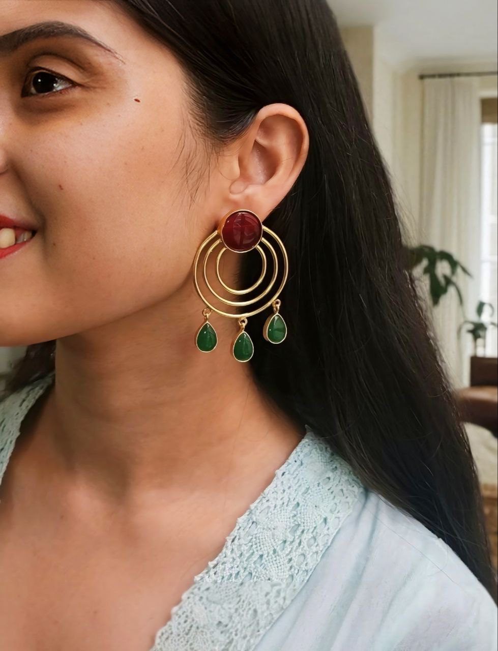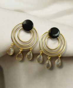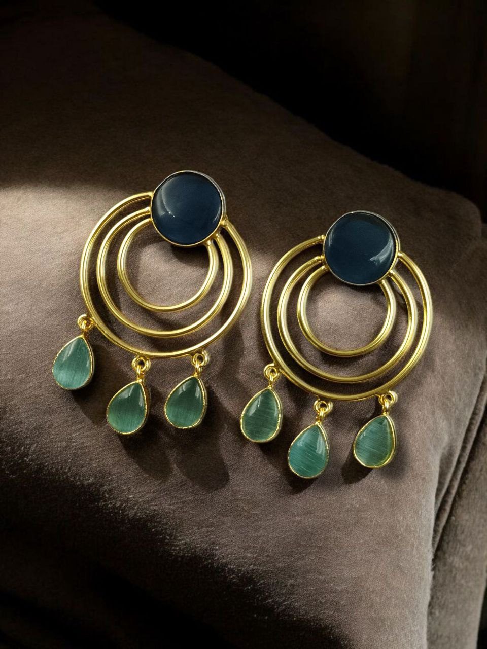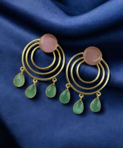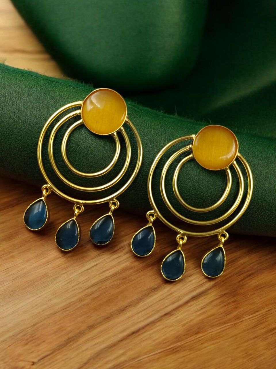 Introducing our Gold Plated Round Dangler Earrings, an exquisite piece that flawlessly fuses ethnic elegance with a modern western look. These earrings are the ideal choice for women who appreciate jewelry that stands out with a touch of tradition and a splash of contemporary charm.