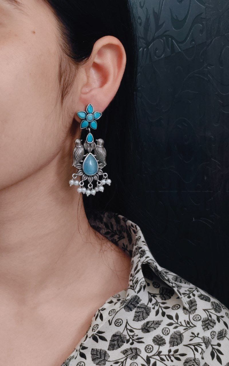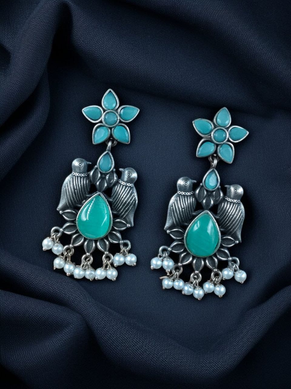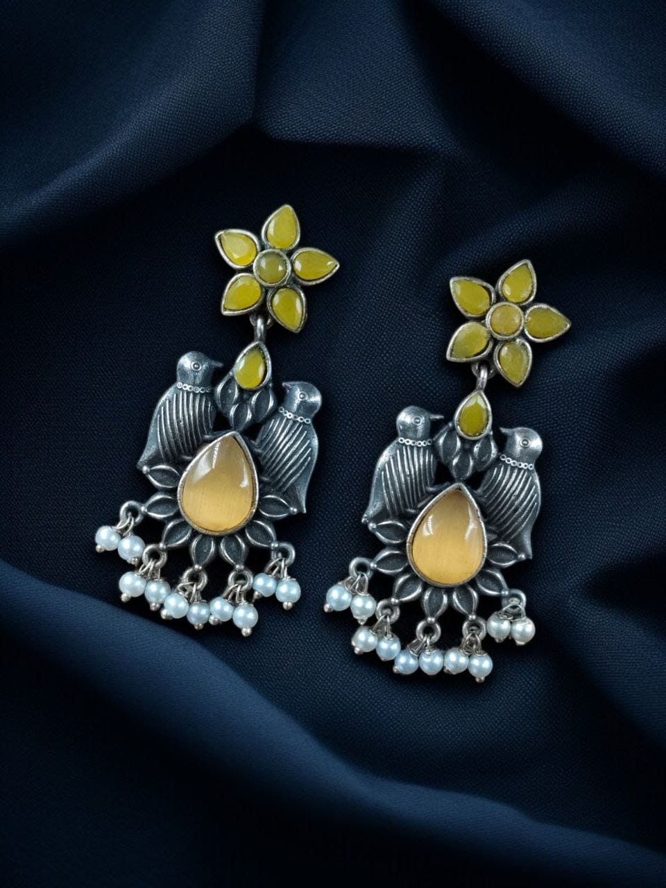 Graceful Monalisa Stone Bird Dangler Earrings ? Ethnic & Daily Wear Jewelry