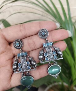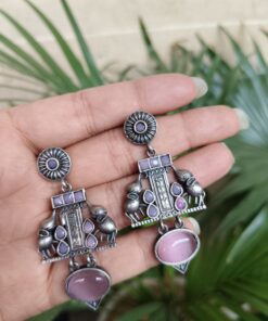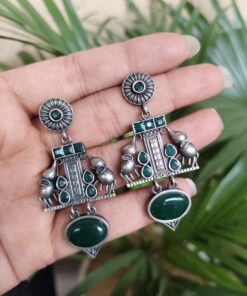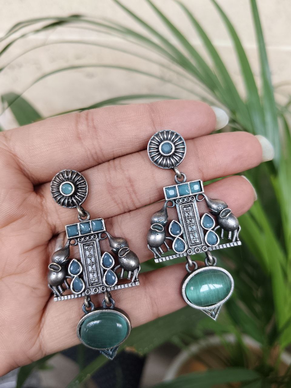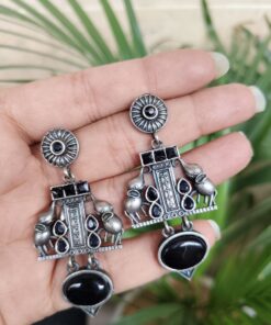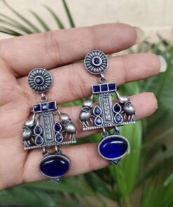 Crafted from high-quality brass and finished with a premium silver polish, these earrings offer durability along with a refined antique look. The intricate elephant detailing showcases fine craftsmanship, making each piece visually appealing and rich in character. Despite their detailed design, they are lightweight and comfortable, allowing you to wear them for long hours without any discomfort.