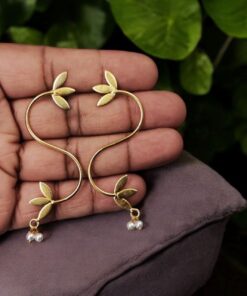 What truly sets these Leaf Style Earring apart is the adorable pearl detailing. Each pearl is placed with precision to highlight the intricate design of the leaf, offering a touch of sophistication and class. The pearls are lustrous and radiant, providing a delicate contrast to the bold yet refined gold-plated brass. This combination of gold and pearl creates a perfect balance of warmth and elegance, making them ideal for various occasions.