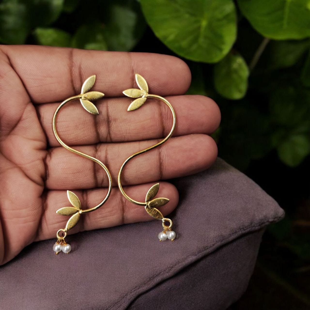 Elevate your accessory game with these Hand-Made Gold Plated Leaf Style Earrings featuring adorable pearl detailing. Expertly crafted by skilled artisans, these earrings seamlessly blend nature-inspired design with modern elegance. Designed to capture the essence of the outdoors, they are the perfect accessory for anyone who appreciates fine craftsmanship, unique design, and the timeless beauty of gold and pearls.