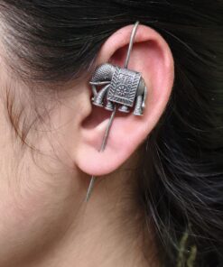 The earcuff features a finely detailed elephant motif, a symbol of strength, wisdom, good luck, and prosperity in Indian culture. Carefully handcrafted to highlight delicate curves and textures, the design reflects ethnic elegance while remaining subtle enough for regular use. The oxidized silver look enhances the detailing, giving the earcuff a rich antique appearance similar to real silver jewelry.