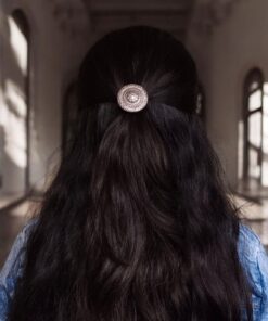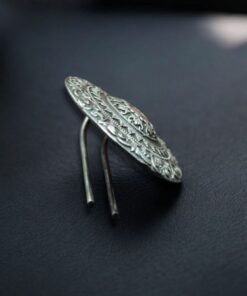 Featuring a detailed floral motif, the hair pin reflects fine artistry inspired by traditional Indian jewelry designs. The oxidized finish enhances the engraved patterns, giving it a vintage handcrafted appeal that stands out beautifully when worn. Whether you’re creating a neatly styled bun, a half-tied hairstyle, or simply accenting your braid, this floral hair pin adds a refined touch that instantly enhances your entire look.