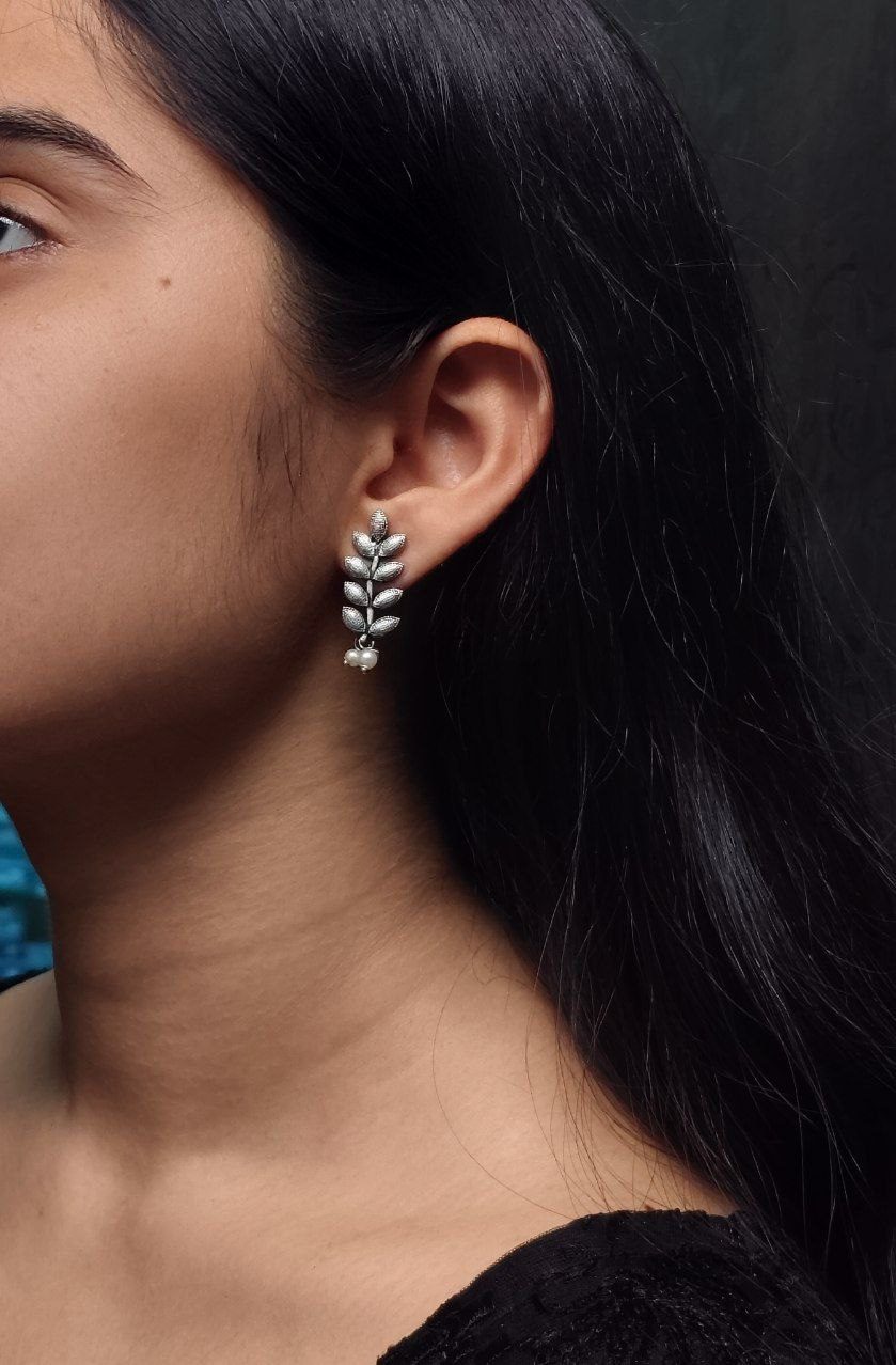 Each pair is handcrafted by skilled artisans, reflecting meticulous attention to detail and a passion for preserving traditional Indian jewelry-making techniques. The oxidised texture beautifully contrasts with the clean lines of the leaf design, creating a standout accessory that’s both modern and rooted in cultural heritage.
