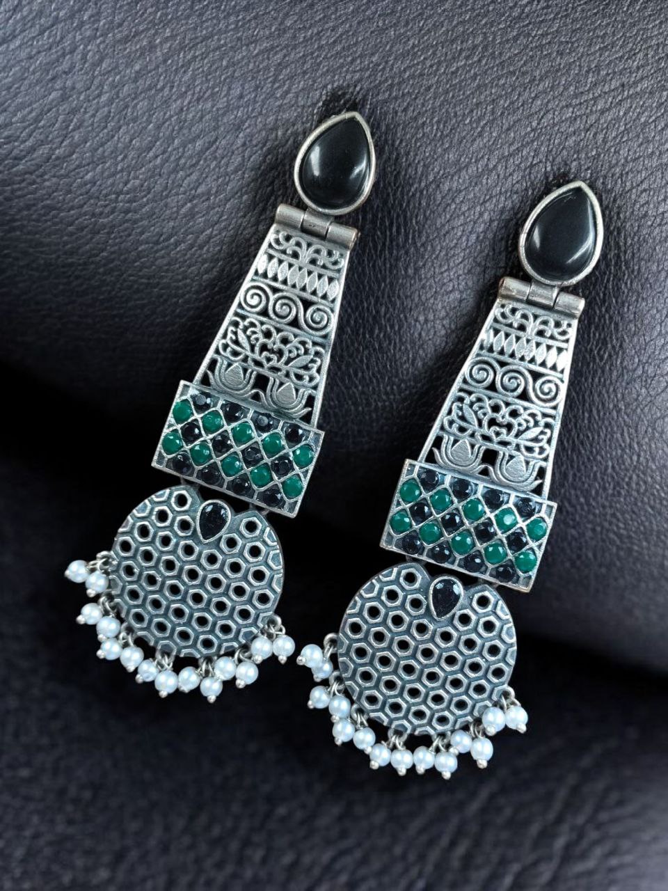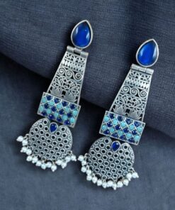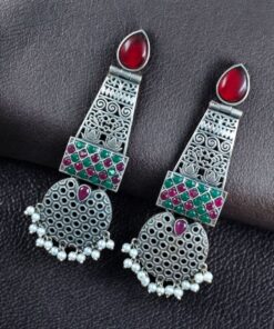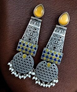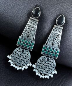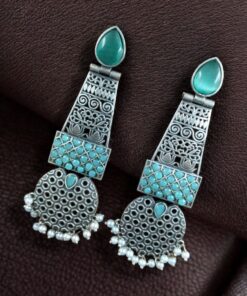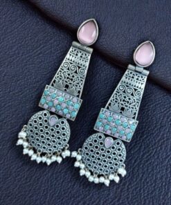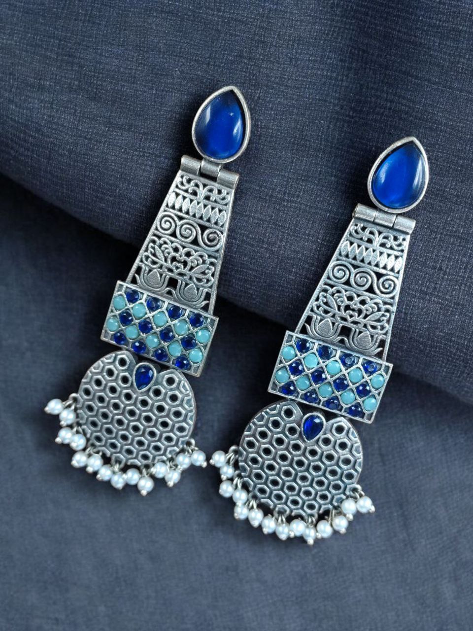 Handcrafted Oxidized Long Earrings | Stone & Pearl Work Unique Design Jewelry For Girls