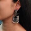 Each pair is handcrafted with care, reflecting the skill and passion of traditional artisans. The oxidised silver finish gives them a vintage touch, while the overall design keeps them relevant in today?s fashion trends. Despite their elaborate appearance, these Oxidized Long Earrings are comfortable to wear for long hours thanks to their lightweight design and secure hook closure.