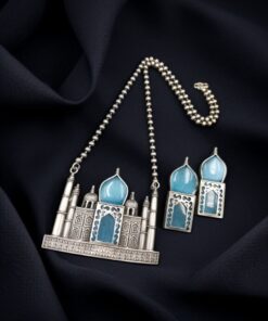 Inspired by the grandeur of the Taj Mahal, this Handcrafted Oxidized Necklace Set is a perfect fusion of Indian heritage and modern artistry. Designed for women who love to express their style with unique and elegant jewelry, this piece is an ideal accessory for any occasion, be it festive celebrations, weddings, or casual gatherings.