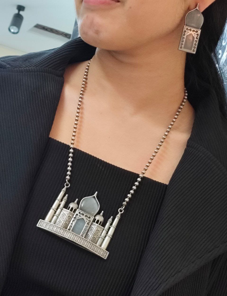 Looking for a unique gift for your loved ones? This oxidized Indian jewelry Taj Mahal Necklace Set makes for a memorable present for birthdays, anniversaries, festive occasions, or even as a symbol of love ? just like the Taj Mahal itself!