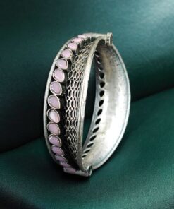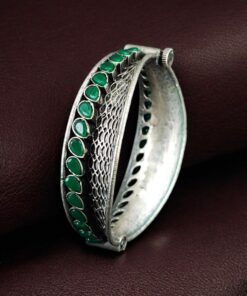Add a touch of artistic elegance to your ethnic jewelry collection with the Handcrafted Unique Design Oxidized Openable Bangle, crafted beautifully in a silver replica finish with detailed stone work and an oxidized look. Designed for women who appreciate traditional craftsmanship with a modern edge, this bangle reflects individuality, grace, and timeless style.
