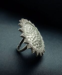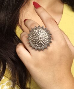 Each ring is handmade by skilled artisans, ensuring exceptional detailing and a unique design that stands out effortlessly. The oxidized silver replica finish gives it a vintage, rustic appeal, making it a versatile accessory suitable for casual wear, festive attire, and even office or college looks. Whether paired with ethnic wear like kurtis and sarees or western outfits like dresses and tops, this Unique Ring adds a delightful finishing touch to your style.