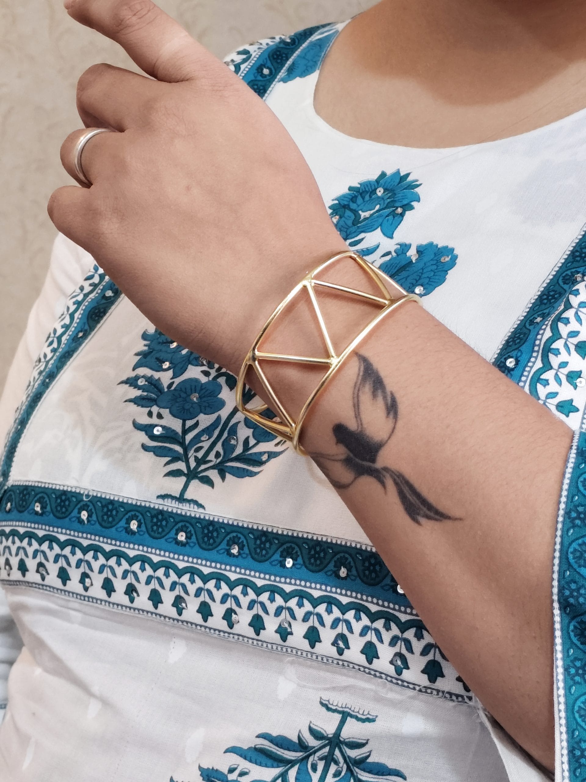 Enhance your style effortlessly with this unique handmade geometric cuff bangle ? a must-have for fashion lovers!