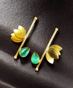 Perfect as a gift for loved ones, these Gold Plated Lotus Stud Earrings with Monalisa stones are an ideal choice for birthdays, anniversaries, or festive celebrations. They reflect the essence of ethnic jewelry while still being trendy and stylish for modern fashion lovers.