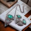 This?Unique handmade necklace is made from high-quality materials, ensuring durability and longevity. The base metal is brass, known for its strength and resilience, which is then coated with a layer of pure silver through an electroplating process. The silver plating is further oxidised to create a unique, rustic finish that enhances the intricate details of the design.