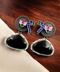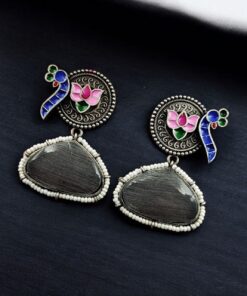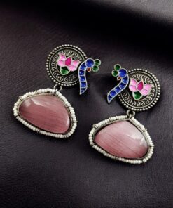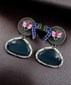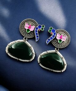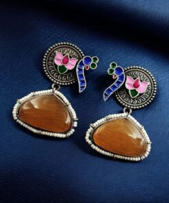 Handpainted Peacock Earrings | Best Monalisa Stone Stud with Lotus Touch