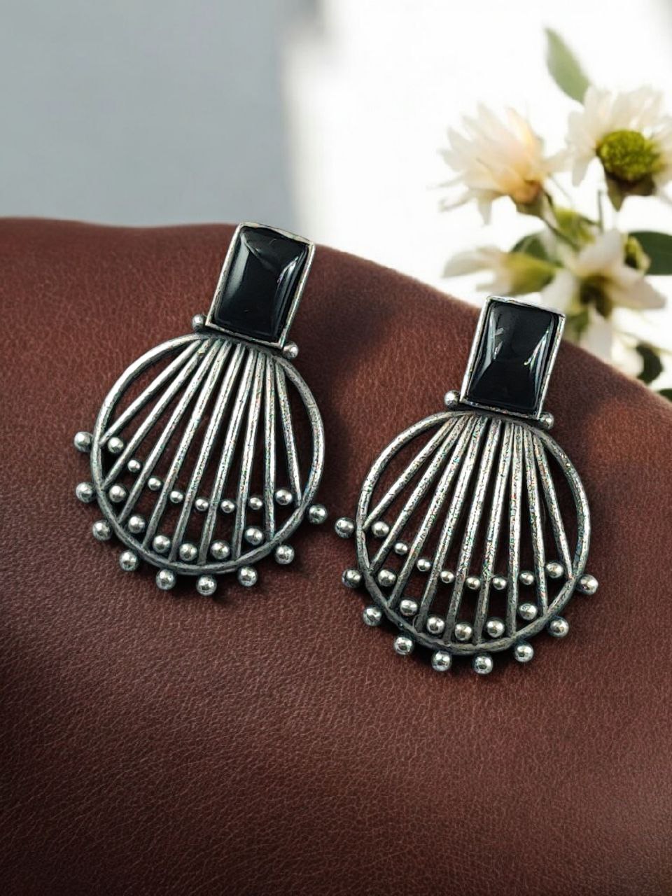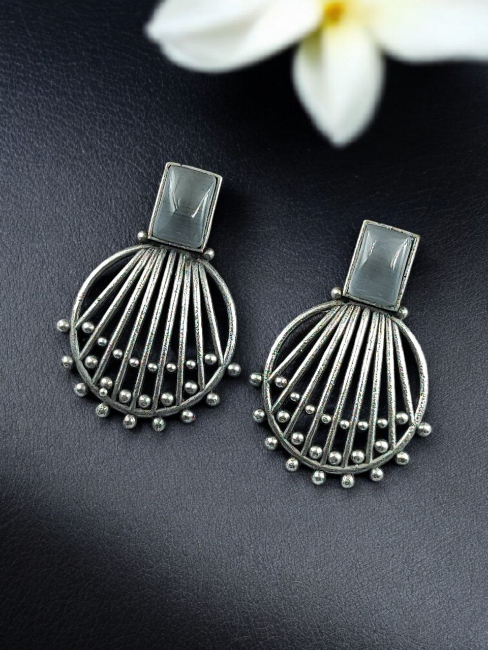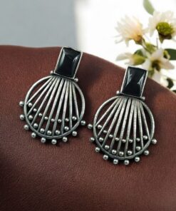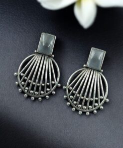 Material: The earrings are made of high-quality Brass, which adds a touch of sophistication and durability to the design. The silver is carefully crafted to resemble the intricate detailing of a Jaipuri Design.