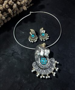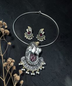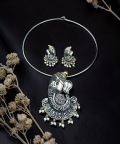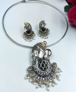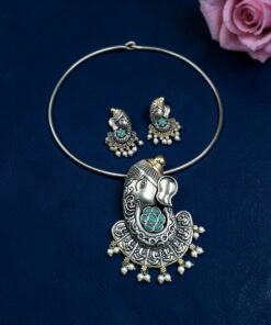 Lord Ganesha Hasli Stunning Two Tone Necklace for Graceful Festive Look