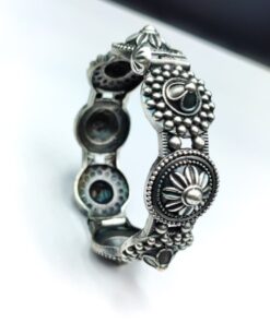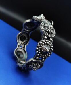“Discover unparalleled elegance with our Luxurious Oxidised Bangle – a stunning masterpiece that seamlessly blends timeless allure with modern sophistication. Crafted to perfection, this bangle exudes opulence, boasting a captivating oxidized finish that mirrors the lustrous appeal of silver.