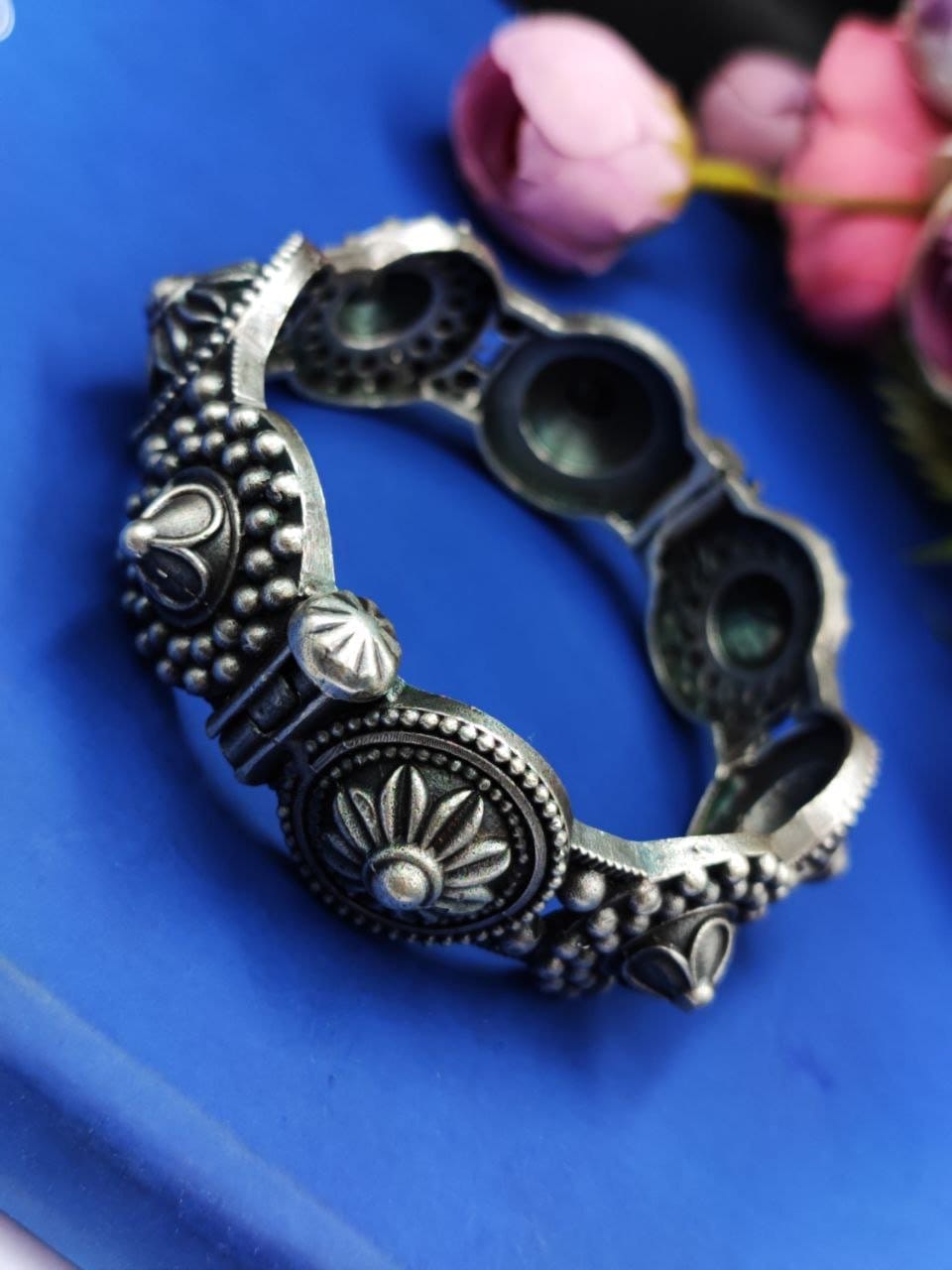Indulge in luxury with our Luxurious Oxidised Bangle – the epitome of elegance and refinement. Elevate your jewelry collection with this exquisite piece that promises to turn heads and leave a lasting impression.”