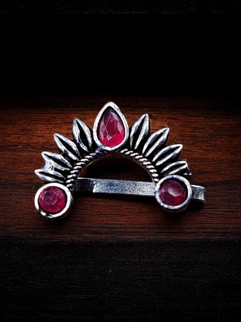 Embrace the timeless elegance of Maharashtrian tradition with our exquisite Marathi Nath in Oxidised Silver Plated Press Nosepin. Specially designed for girls who wish to adorn themselves with ethnic jewelry without the need for a piercing, this non-piercing Nath is a perfect blend of tradition and modern convenience. Crafted with meticulous attention to detail, it showcases the unique charm of the Marathi Nath, a symbol of cultural pride and heritage that has been worn by women across Maharashtra for centuries.