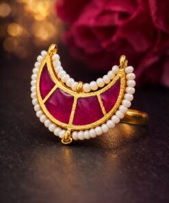 This ring pairs beautifully with ethnic outfits like sarees, lehengas, and kurtis. You can also style it with Indo-western attire for a trendy fusion look. For a bold statement, wear it as a standalone piece, or combine it with matching earrings and bangles for a coordinated appearance. This jewelry piece enhances both minimal and heavy looks, making it a versatile addition to your collection.