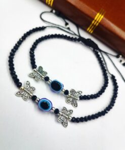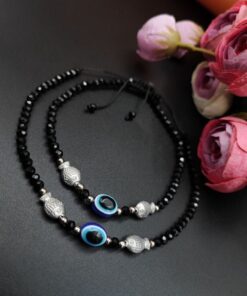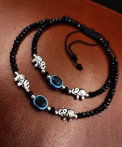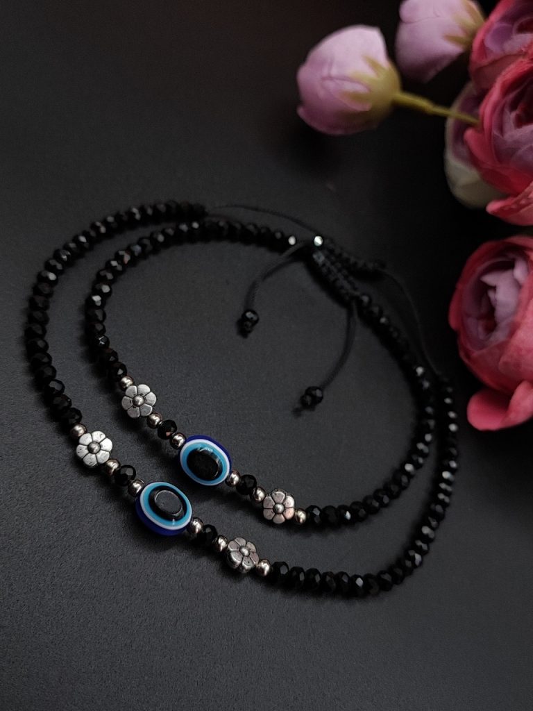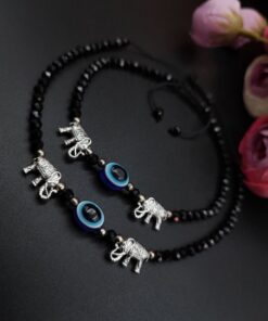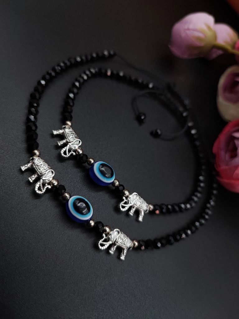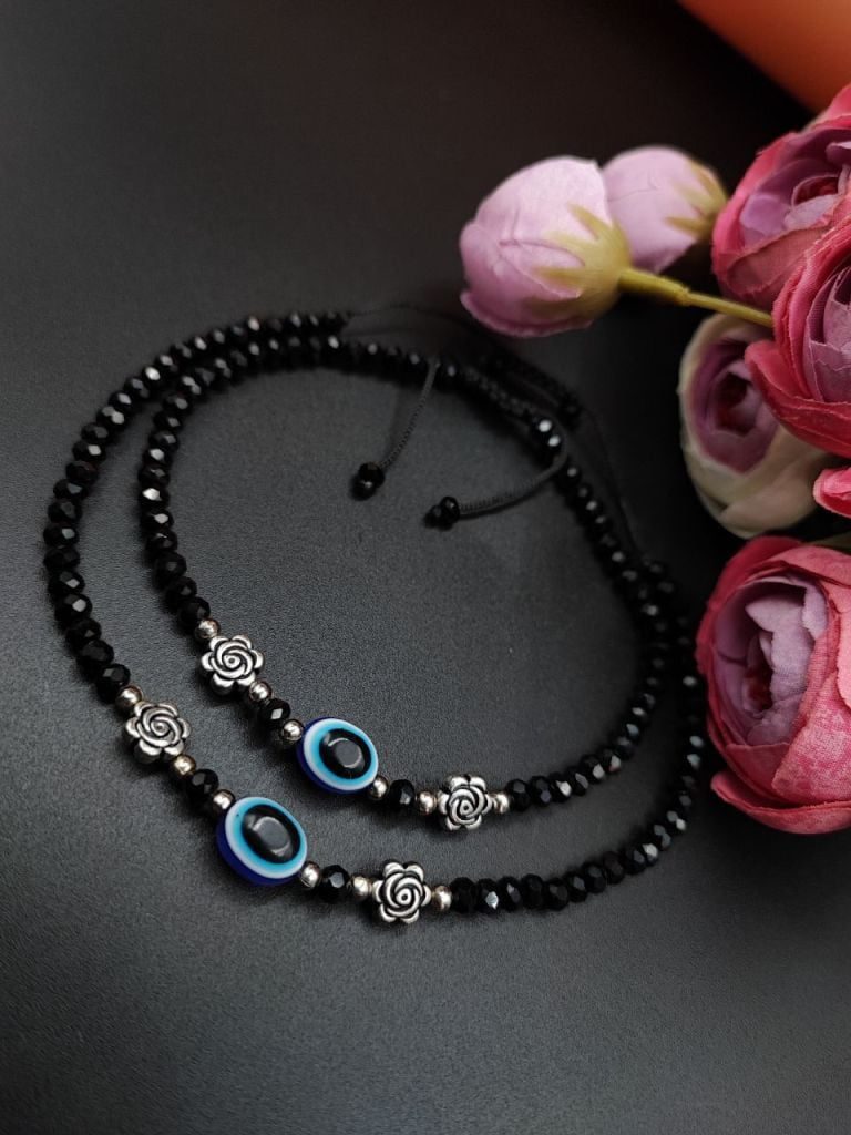 Introducing our exquisite Oxidised Anklet, a stunning piece of Evil Eye Beads Anklets that beautifully adorns your Jewelry with its intricate design and elegant craftsmanship. Made with care and precision by skilled artisans, this anklet is the perfect accessory to elevate your style and add a touch of grace to any outfit. Crafted using high-quality materials, our Oxidised Evil Eye Beads Anklets showcases a unique oxidized finish that gives it a vintage and rustic charm. The dark patina and intricate detailing create a captivating contrast, making it a standout piece of jewelry.