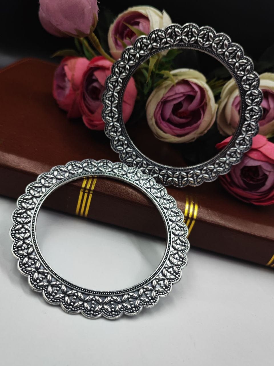 Oxidised Bangle – Beautiful Flower Design German Silver Chudiya