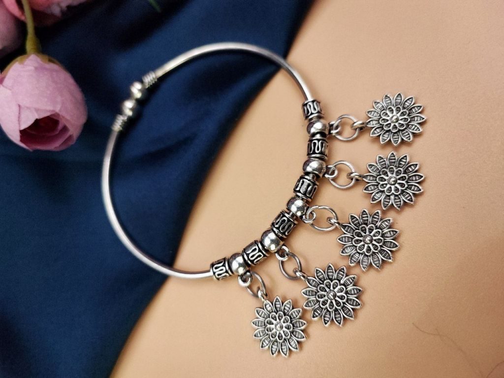 Traditional German Silver Flower Charm Bangles | Beautiful Ethnic Handcrafted Jewelry