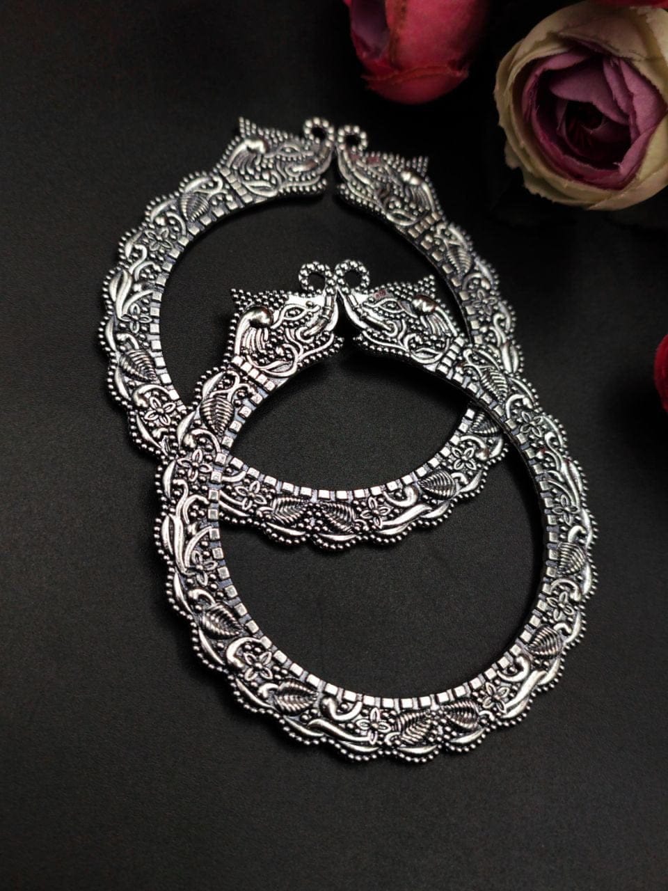 Introducing our German Silver Elephant Bangle collection of Oxidised Design, handcrafted by D9creation. Each piece is a work of art, Our Oxidised Bracelets and Bangles are made from high-quality German Silver materials, ensuring durability and long-lasting beauty. The oxidized finish gives them a unique and distinctive look, with a dark patina that adds depth and character to the jewelry.